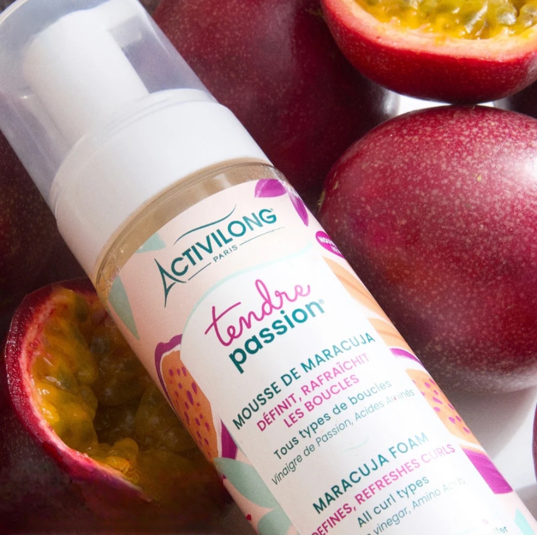 Pensée pour les cheveux ondulés, bouclés, frisés et crépus, la gamme Tendre Passion d’Activilong est un véritable concentré de douceur avec un parfum ultra gourmand au fruit de la Passion.