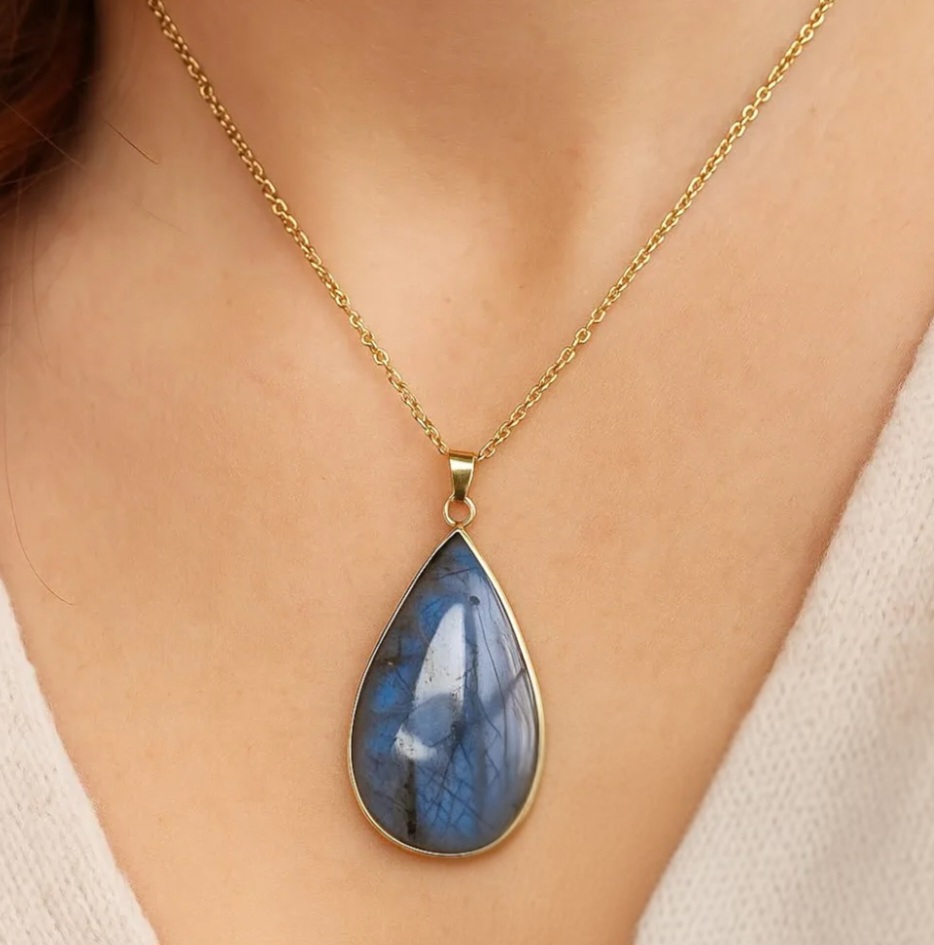 Porter la labradorite au cou est une excellente manière de profiter de ses vertus au quotidien.