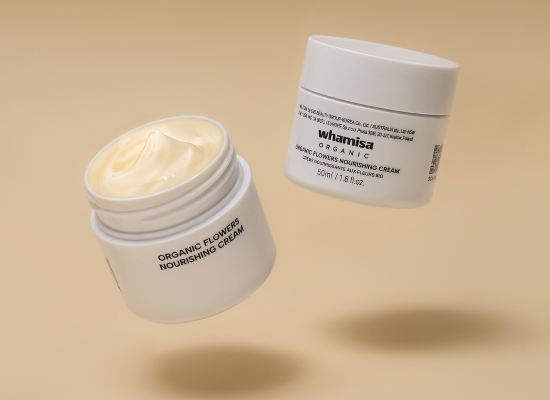 La crème nourrissante aux fleurs bio fermentées Whamisa convient aux peaux sèches, matures et aux peaux normales.