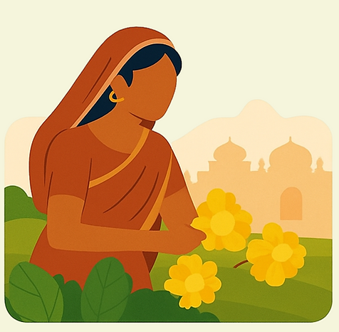 1 Nous commençons là où la spiritualité habite les temples antiques de l'Inde. Les fleurs offertes lors des rituels quotidiens sont récoltées après avoir rempli leur fonction divine.