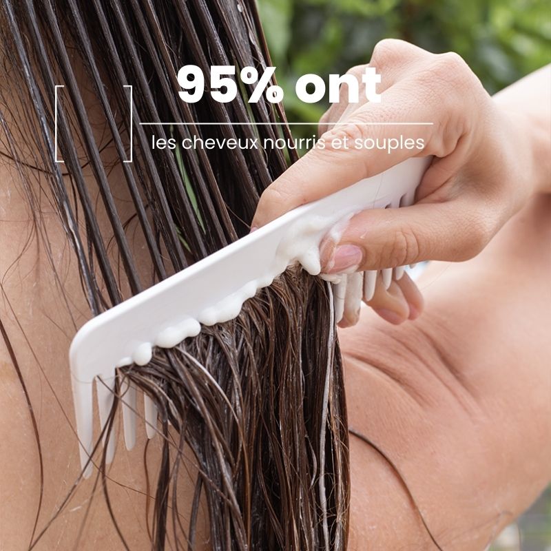 • Une texture baume crémeuse qui enrobe vos cheveux de douceur.