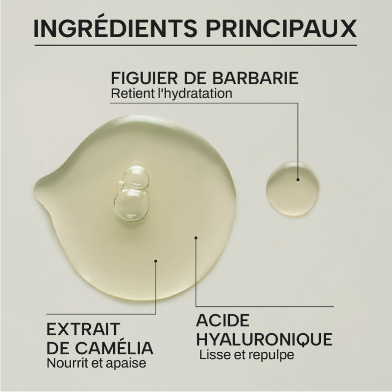 Extrait de tige de figuier de Barbarie : Hydratant, apaisant, riche en antioxydants. Il aide à hydrater en profondeur et à calmer les irritations cutanées.