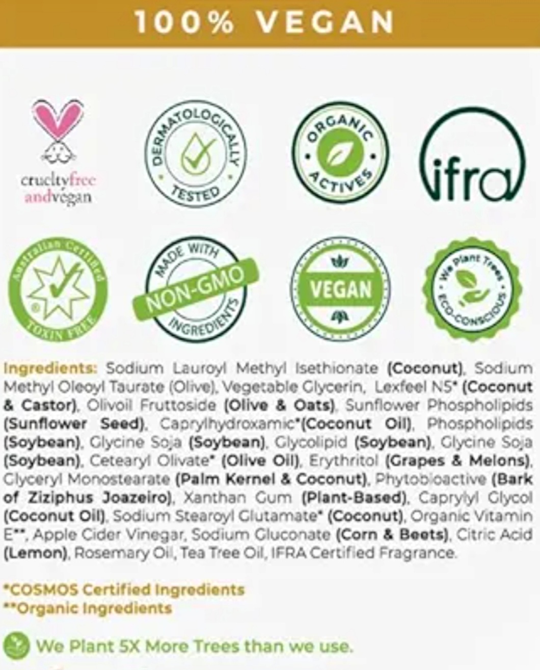 Sans petrochimies, parabènes, sans laurylsulfate ni produits chimiques.